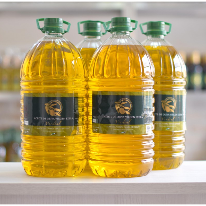COSECHA FINALES DE 2025 E INICIO DE 2026 Caja que contiene cuatro botellas de 5L de aceite de oliva virgen extra. Ideal para estar provisto de aceite de oliva durante un largo tiempo.